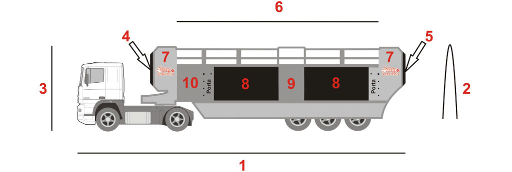 2) Largura: 3,20 mts (Fechado) | 4,20 mts (Aberto/Hidráulicos)